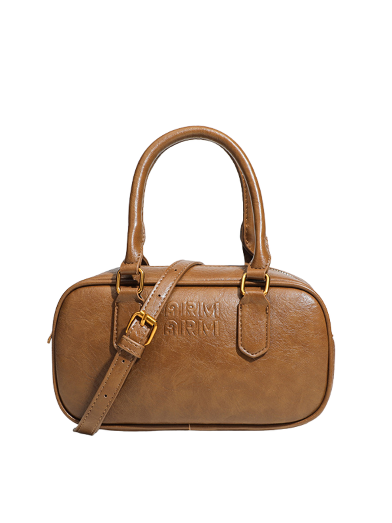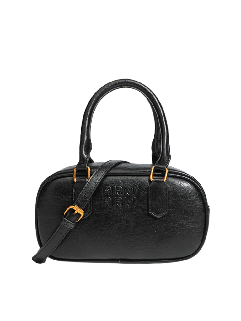 Armelin to miejski, energetyczny projekt z zaokrąglonymi krawędziami i tłoczonym logo. Złote elementy i błyszcząca skóra dodają jej elegancji, a krótkie uchwyty oraz regulowany pasek pozwalają na noszenie w dłoni lub na ramieniu.