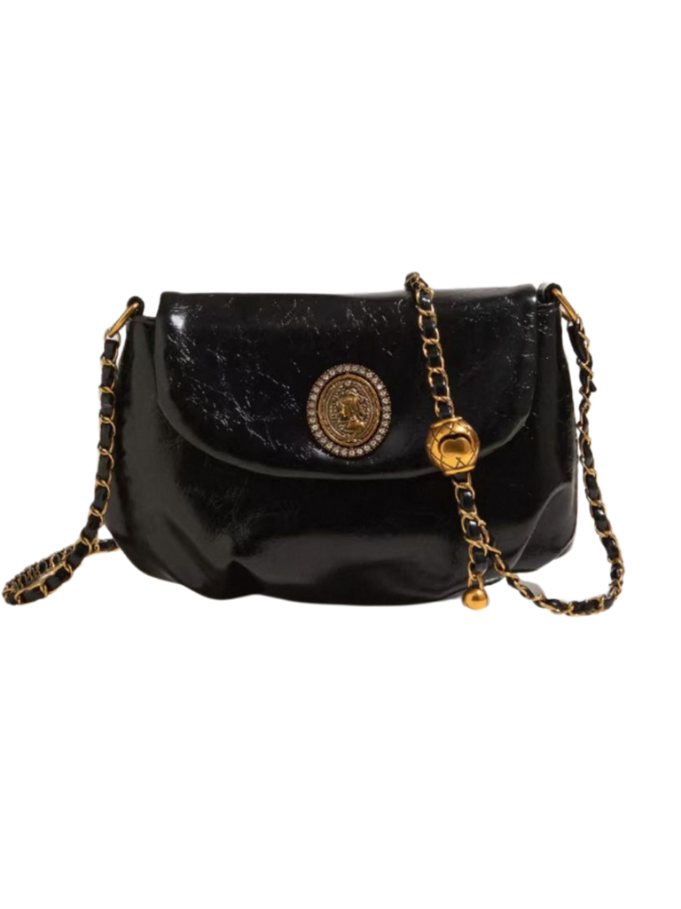 Liorra to projekt, który przemawia detalami. Pasek z przeplatanym łańcuchem, ozdobne zapięcie i składana forma tworzą wyrafinowany, ale efektowny wygląd. Miękka faktura sprawia, że idealnie pasuje do codziennej elegancji.