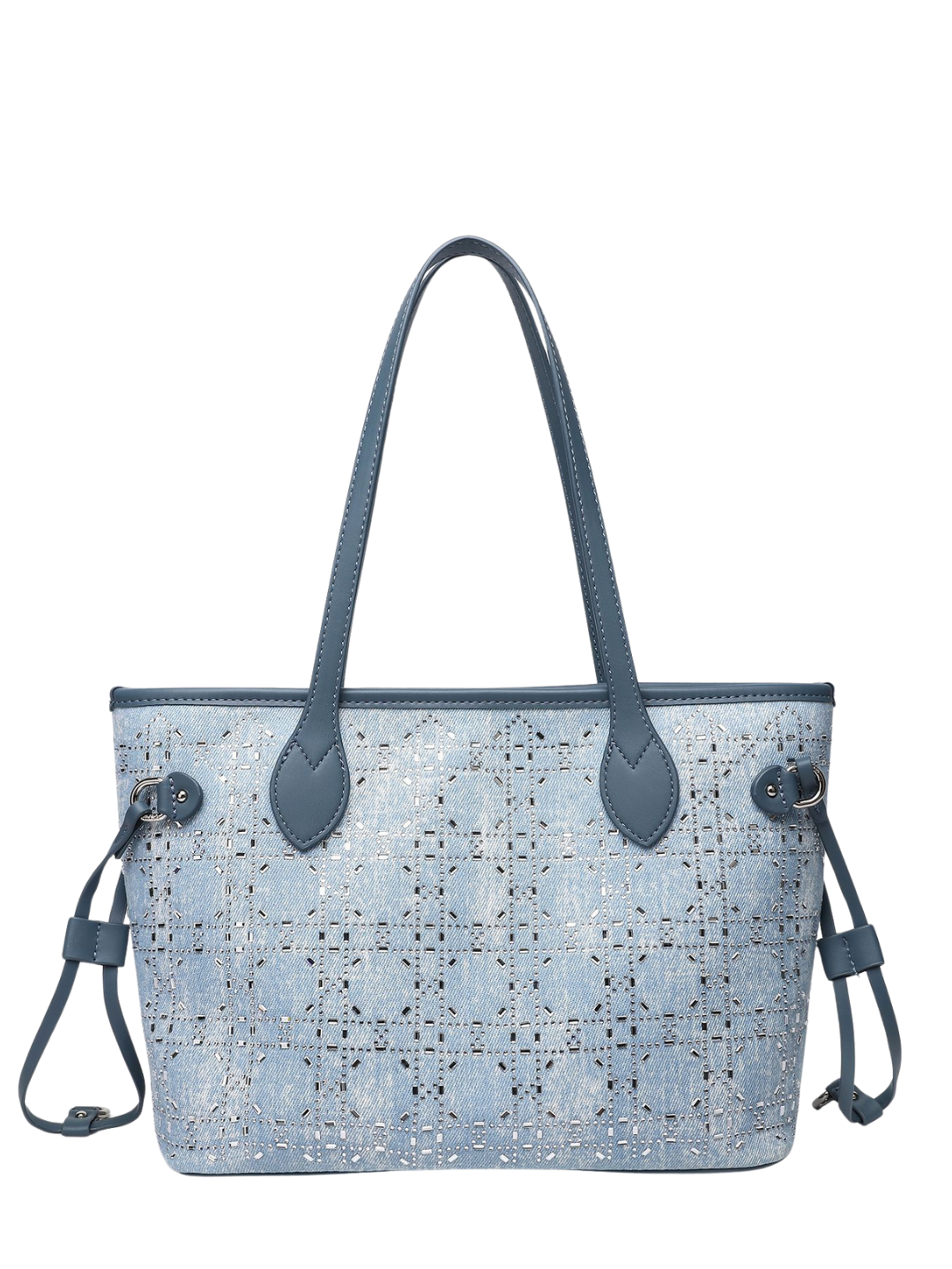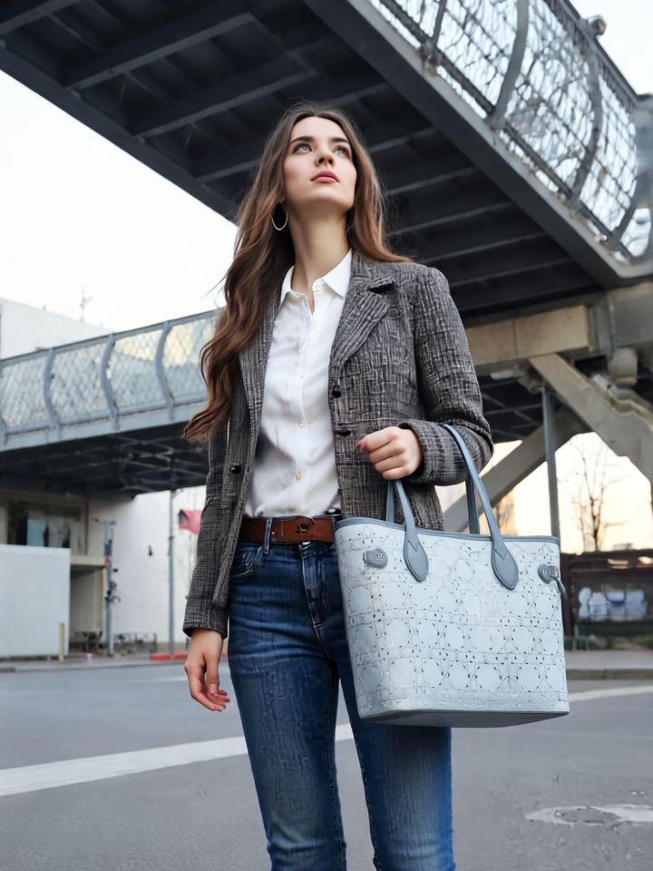 Lorvi to połączenie subtelnej elegancji i nowoczesnego designu. Jasnoniebieski korpus z teksturą przypominającą denim oraz perforowany wzór nadają torbie wyjątkowy charakter. Ciemniejsze skórzane uchwyty i dekoracyjne troczki po bokach podkreślają jej stylowy wygląd. Idealna na co dzień i na specjalne okazje — Lorvi przyciąga spojrzenia.