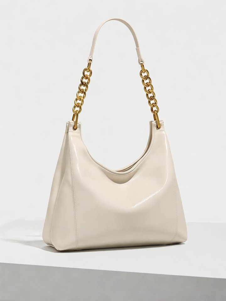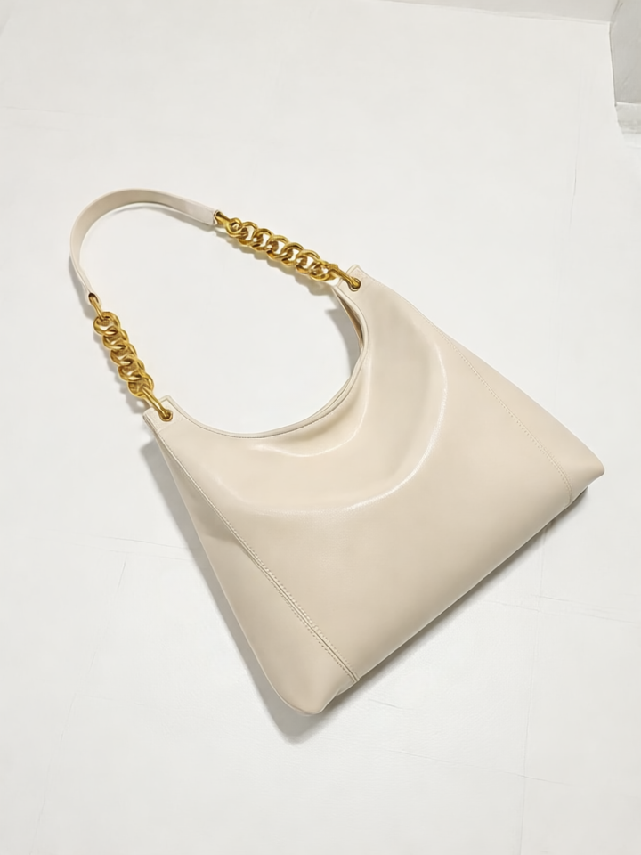 Ravella to projekt, który przyciąga prostotą formy, ale zachwyca detalami. Łańcuchowe połączenia paska nadają jej wyrazistości, a miękka konstrukcja zapewnia wygodę i subtelną elegancję.